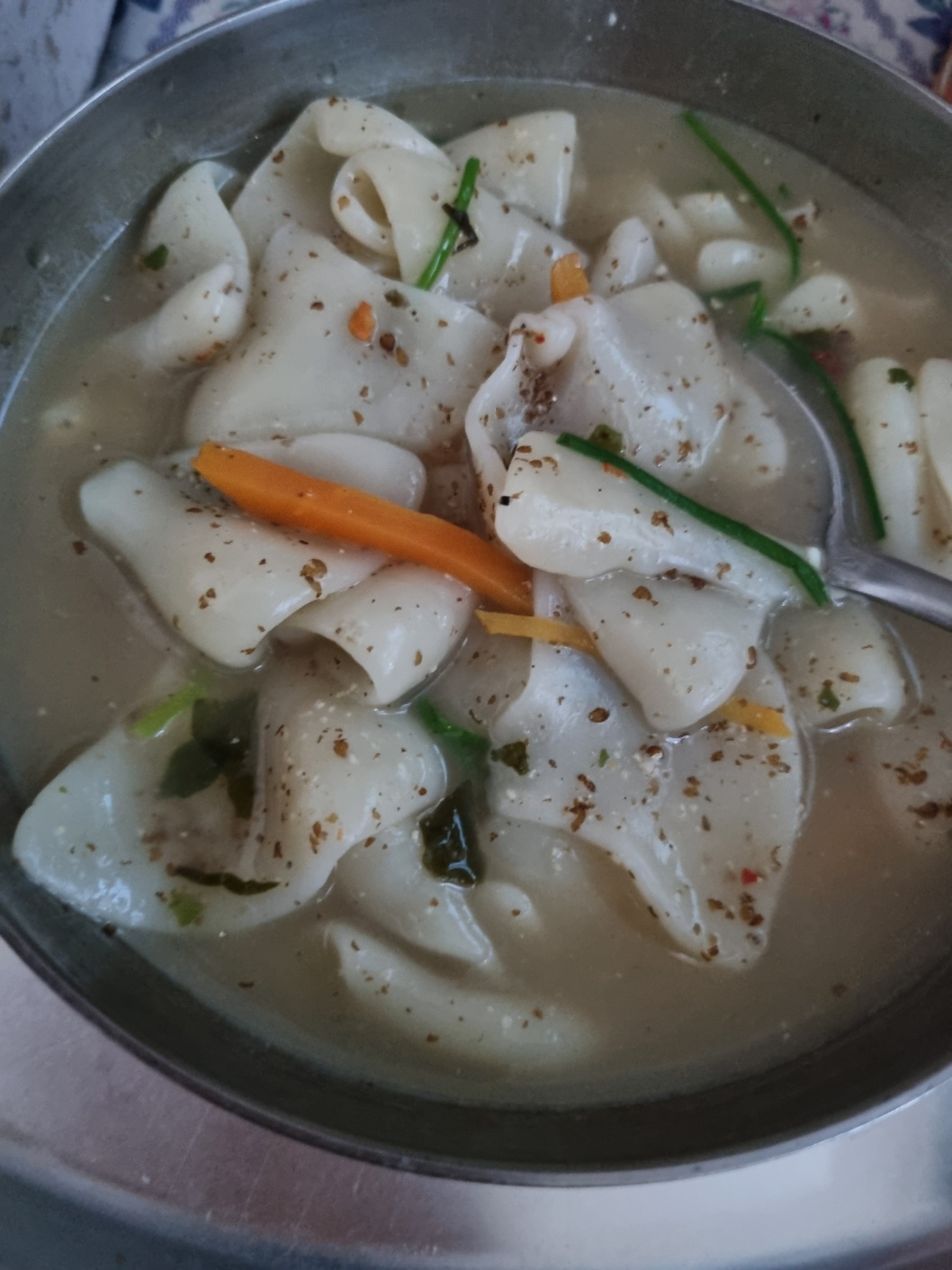 들깨 드레싱을 위해 쓰고 남은 들깨가루가 많아서 들깨수제비를 만들어 봤는데,