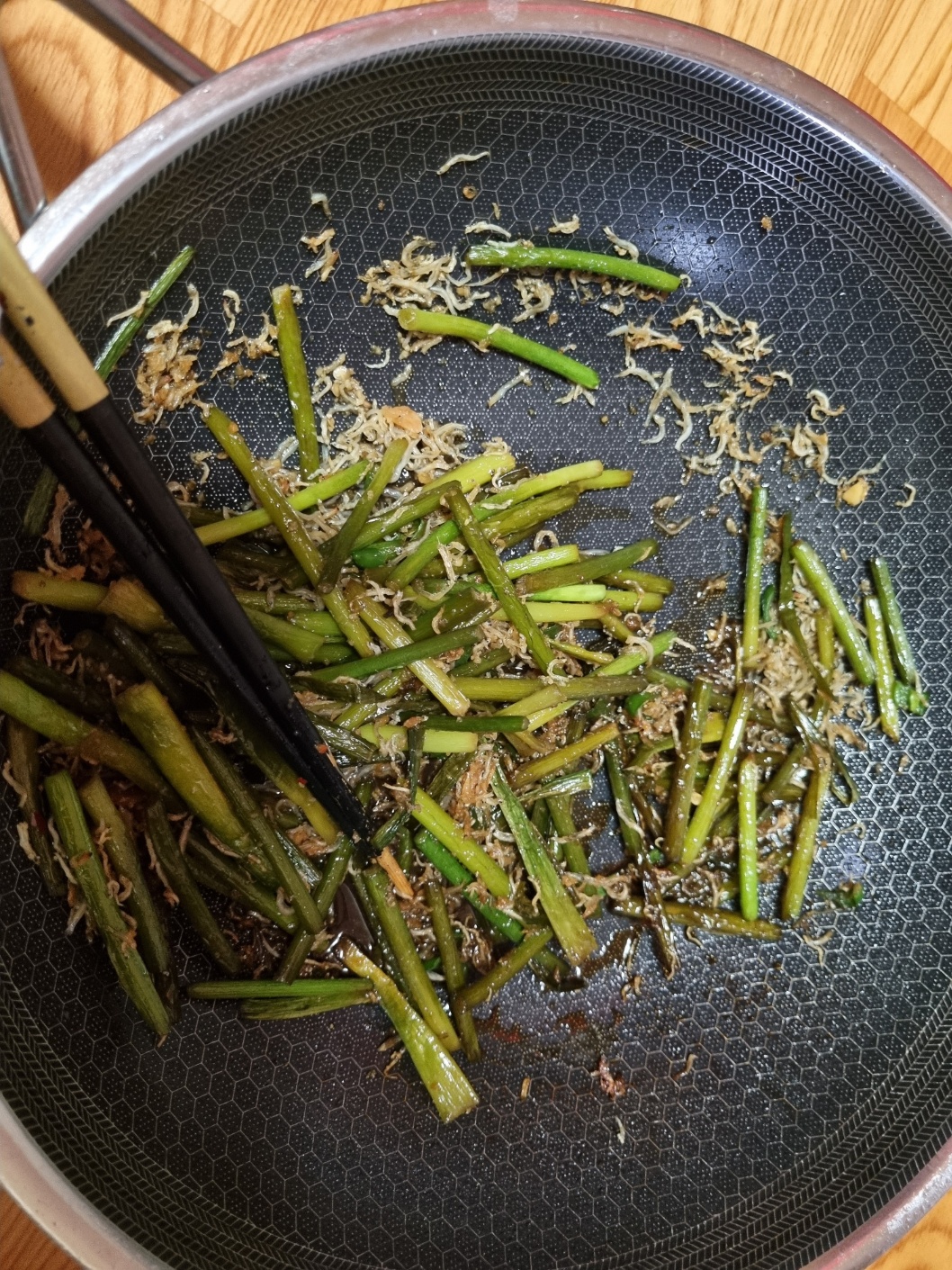 마늘쫑에 잔멸치를 넣고 볶아봤다
