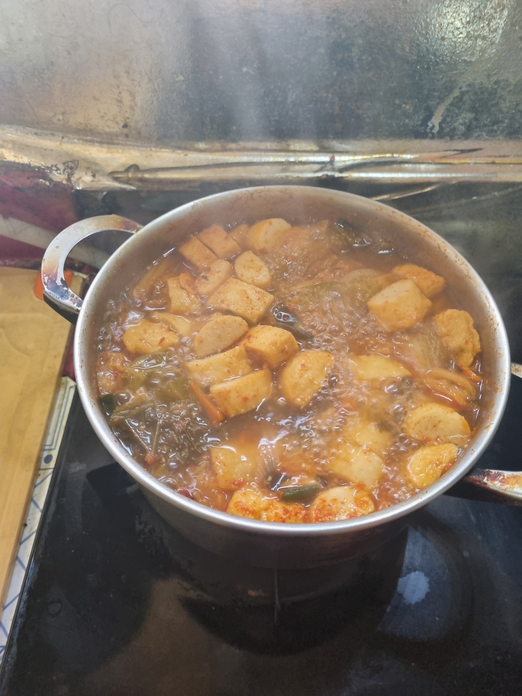 특별한 레시피를 따라했다기 보다 그냥 김치국에 어묵을 넣어 끓였다.