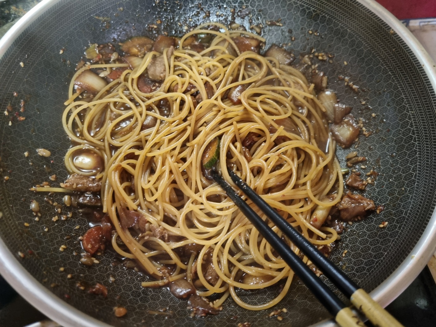 짜장밥을 해먹고 난 후 남은 짜장으로 파스타를 만들어봤다
