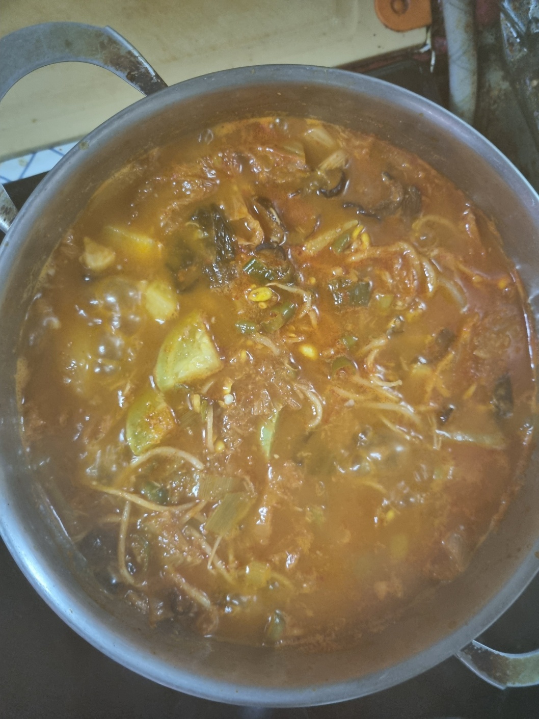 그중에 맛없는 김치용 레시피를 골라서 이것 저것 응용해 끓여봤다