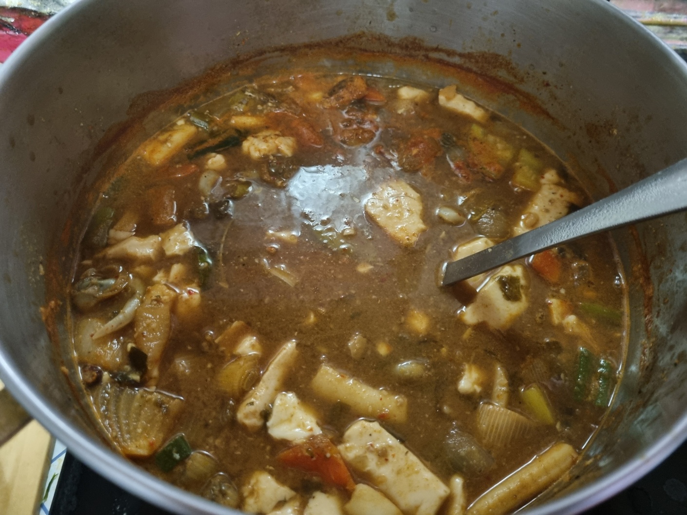 냉동 모듬 해물, 냉동 키조개, 감자, 애호박, 연두부 등을 넣고선 끓였다