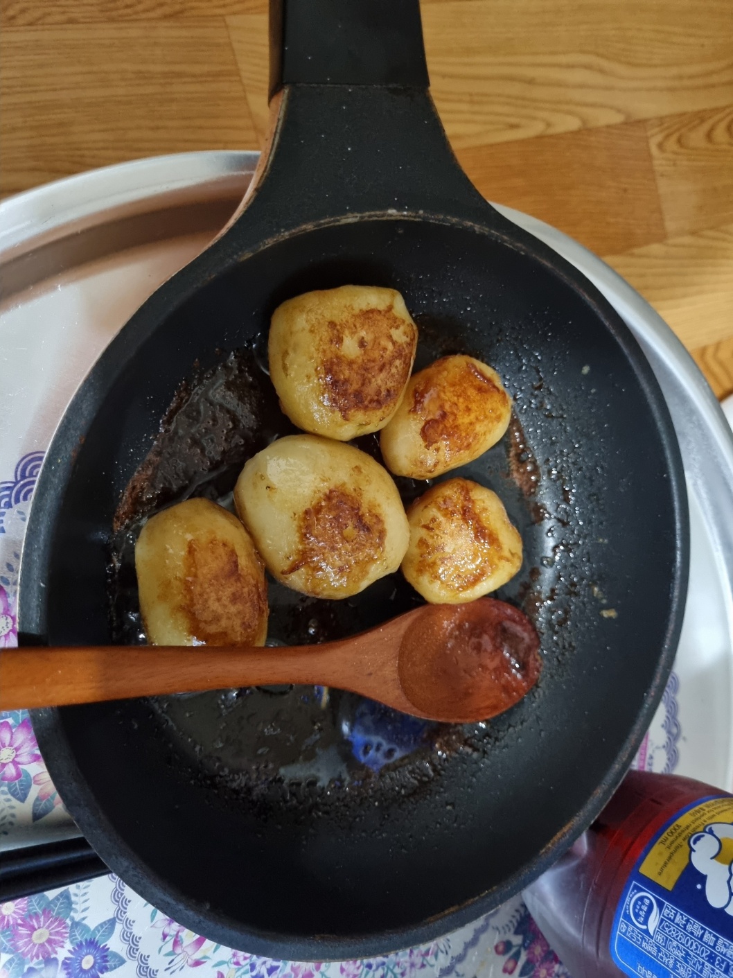 렌지로 10분 쪄낸 후에 버터, 설탕, 맛소금으로 구워냈다